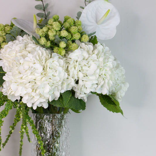 Vores hvide kunstige buketter udstråler renhed, ro og elegance. De faux blomster...