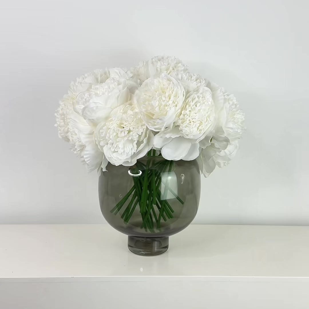 White peonies is a handmade , lifelike artificial bouquet in pure white shades. The large, layered petals give a bright, calm and timeless expression that fits beautifully in both Nordic minimalism and more classic decor. Perfect on the dining table, in the hallway or bedroom.