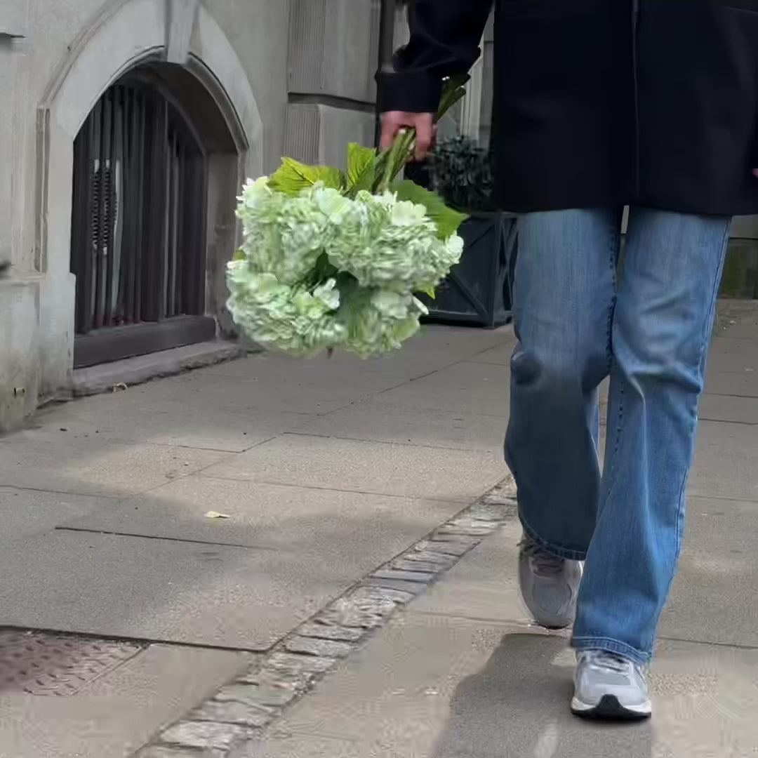 Hydrangea Dust Luxe is a lush bouquet of handcrafted, artificial hydrangeas in soft, dusty green shades. The round, voluminous heads create a fresh, calm and elegant look that fits beautifully into both Nordic minimalism and classic interiors – perfect for the dining table, living room or entrance hall.